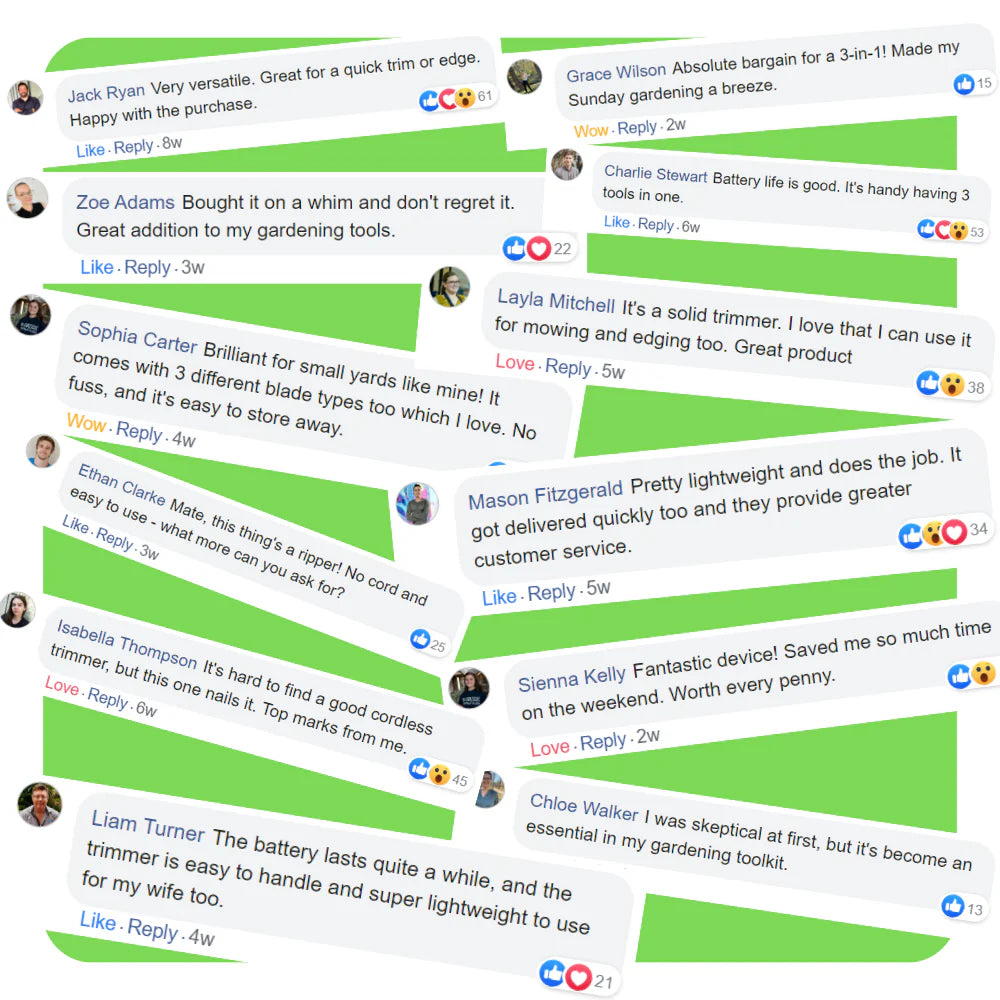 TESTIMONIAL"By far the best 3-in-1 garden toolthat’s great for mowing + trimming + edging so I don’t have to purchase multiple garden tools anymore. Best investment ever!" ⭐⭐⭐⭐⭐ John Smith - NSW Verified Purchase