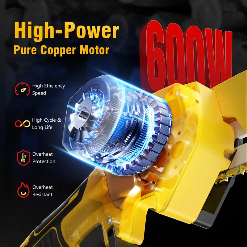 Say goodbye to old pruning saws and heavy chainsaws. Take back control of your gardening tasks with our new Cordless Electric Chainsaw and make pruning/trimming a breeze.