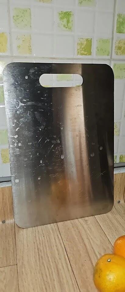 We wanted a metal cutting board to avoid microplastics. Thin and easy to use as cutting board. Board works for us.