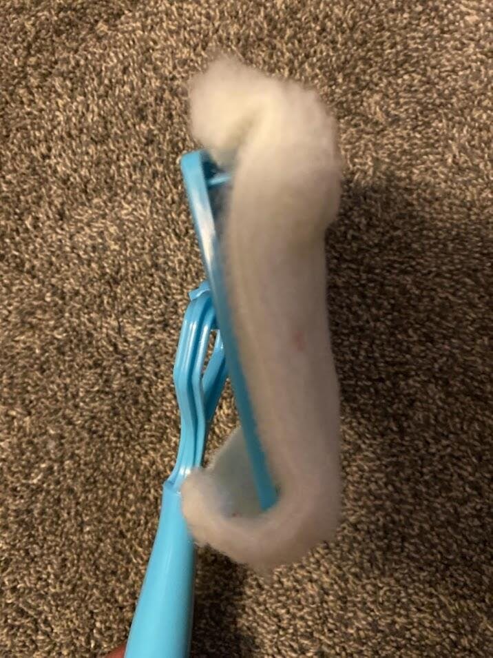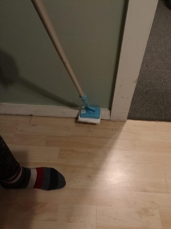 Once you figure out how to hold the handle it’s really simple to use. No bending or getting on your knees to clean those baseboards!